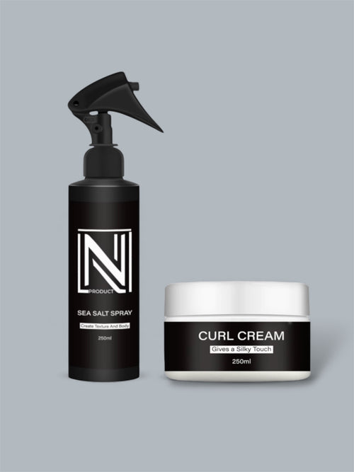 Découvrez le combo boucles NAYR : La synergie parfaite entre la Curl Cream pour nourrir et définir, et le Sea Salt pour apporter texture et volume. Une finition professionnelle.